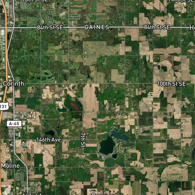 Driving through this area feels like moving between two worlds—open land giving way to steady suburban development, with newer ranch-style homes settling in alongside established neighborhoods across nearly 4,000 acres. A restaurant is just a three-minute walk away, and you've got six more within a mile, so dinner doesn't require much planning. The nearest grocery is about two miles out, and coffee shops are similarly close, which means daily errands happen without much fuss. Median homes here run around $590K, and you're served by Caledonia Community Schools, which draws families to the area. Green Lake sits just 1.7 miles away if you want to get on the water, and it's less than 20 minutes to downtown Grand Rapids or about 18 minutes to the airport—close enough to the city without feeling hemmed in by it. Gaines Charter Township has been growing steadily, and this pocket captures that blend of newer construction and room to breathe.
