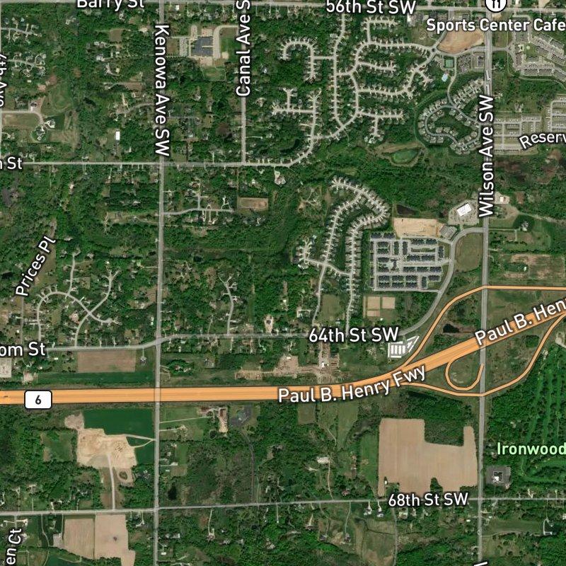 Discover what makes 64th St & M-6 Fwy Area unique — shops, streets, and community character.