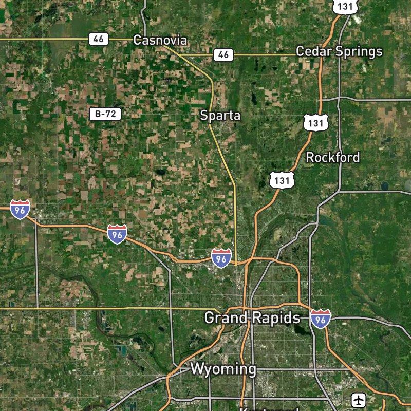 People often think of rural West Michigan as one big stretch of farmland, but 7 Mile Rd Area surprises you with density—186 restaurants and 36 grocery stores within a couple of miles, with most essentials practically at your doorstep. You're in Alpine township, home to some of the state's most prolific apple orchards, yet this particular corridor along Alpine Avenue has become the commercial spine of the township, anchoring everything from local spots like Fricano's Pizza and Perrin Brewing Co. to everyday shops and services. The neighborhood itself is made up mostly of ranch-style homes; median prices hover around $435K. What makes it work—beyond the convenience—is the mix: you get genuine farmland character just outside your door (Wahlfield Park has seven miles of trails for mountain bikers and cross-country skiers), access to Kenowa Hills Public Schools, and a straightforward drive into downtown Grand Rapids in about 16 minutes. It's the kind of place where you can grab coffee steps from home, see apple blossoms in spring, and still feel rooted in something that actually grows here.