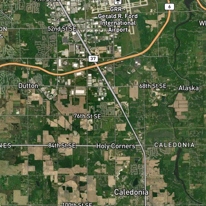 The smell of coffee hits you first—the kind that drifts from a shop you can walk to in three minutes—and you realize immediately this isn't quite rural anymore, even though the township around it still feels that way. About 684 acres of traditional homes cluster around 76th and Broadmoor, a pocket of Caledonia township that's close enough to downtown Grand Rapids (25.5 minutes) to matter, but far enough to breathe. Homes here run around $400K and sit under the Caledonia Community Schools district umbrella. Thirty-six restaurants within a mile means you're not driving far for dinner—the real kind, not the chain kind—and Lepard Preserve is just over a mile away when you need actual quiet. The airport is ten minutes out, which matters if you travel. It's the kind of place where you get the small-town geography of the township without having to pretend there's nothing nearby.