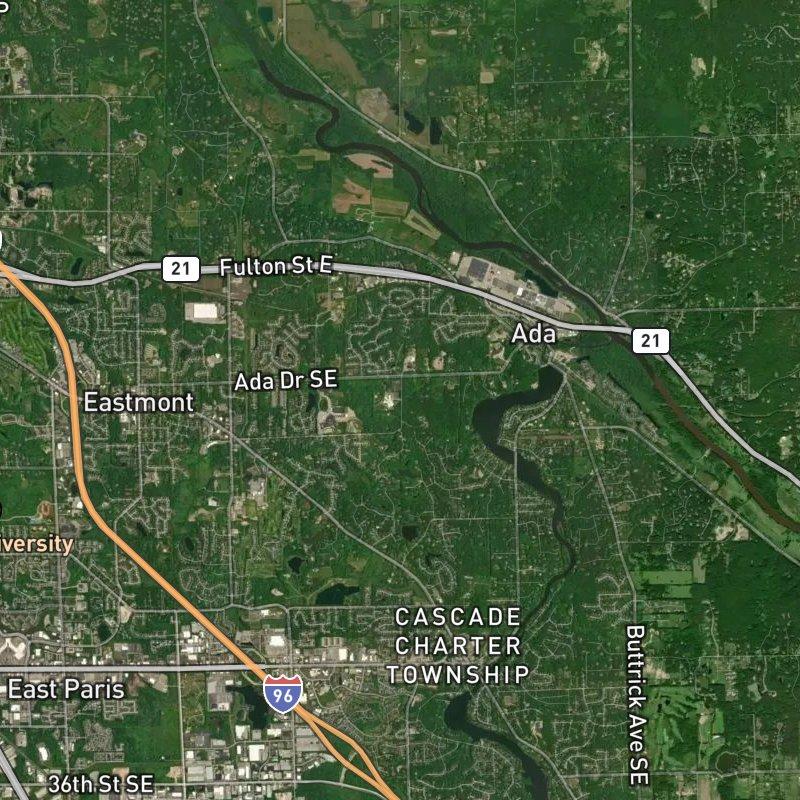 Driving through Ada Dr Area feels like moving through a neighborhood that's figured out the balance between space and access—you get acreage and breathing room without the isolation, since a grocery is a quick walk away and there are 36 restaurants within a mile, everything from casual to sit-down spots just steps off the main roads. The dominant ranch homes sit on brick and HardiPlank lots that give the area a straightforward, unpretentious character; median prices hover around $535K, which lands here squarely in the middle ground for Grand Rapids suburbs. You're fifteen minutes from downtown and the airport when you need to be, but the real draw is that the Thornapple River runs through here, and Lions Park sits about a mile down the road if you're looking for green space—the kind of proximity that makes weekends easier without feeling like you're living in a parks catalog. Forest Hills Public Schools handles the district, and the whole pocket has the feel of a place that's neither brand-new nor fighting to prove itself, just a competent residential stretch that works.