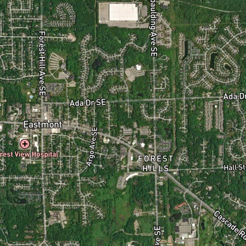 Early evening light hits the brick and tree-lined streets of Apple Plat Area just right, when the neighborhood's compact scale becomes its whole appeal. You're about 12 miles east of downtown Grand Rapids here, in Ada township, where 111 acres of residential streets connect to everything without feeling cramped—a grocery is a three-minute walk, and eighteen restaurants sit within a mile, so dinner might be steps away or a short drive depending on what you're after. The Forest Hills Public Schools district covers the area, and homes run around $296K. Forest Hills Park is a fourteen-minute walk if you need green space, though the neighborhood itself has enough tree coverage to feel residential without isolation. Downtown Grand Rapids is close enough for a weeknight, Gerald R. Ford Airport closer still at fourteen minutes, but the real payoff is that you can get coffee two miles out and everything else without leaving the block.