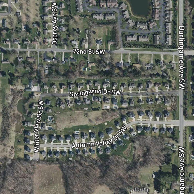The morning commute here runs just under 24 minutes, leaving residents time to notice the modest, well-kept homes spread across these 18 acres where most families have chosen to stay put and build roots. Within a mile or so, a coffee shop waits for the early risers, and the rhythms of daily life—groceries, dinner out, a quick errand—all stay comfortably close. It's the kind of place where neighbors know one another, where Byron Center schools shape childhood, and where the steady hum of ordinary life feels like enough.