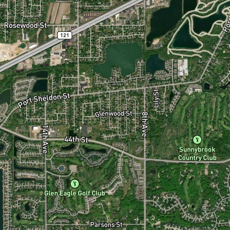 If you're heading out here, the first thing you'll notice is how much land breathes between the homes—this is a sixty-seven-acre subdivision where lots average just under half an acre, so you get real space without feeling remote. Homes cluster around a quiet residential feel, with Georgetown Community Park less than a mile away and Kenowa Lake just over a mile out if you want water access. A dozen restaurants sit within walking distance, a grocery run is about a mile, and downtown Grand Rapids is only sixteen minutes by car, so you're genuinely close to everything without living in it.