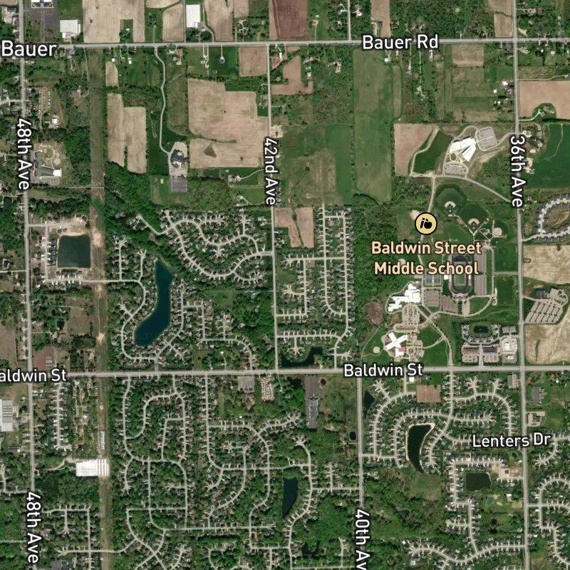 You'll notice the quiet residential character right away—tree-lined streets with solid homes that reflect the area's established neighborhood feel in this part of greater Grand Rapids. Baldwin Street and 40th Avenue sit in a straightforward residential zone where families have put down roots, and the pace of life stays grounded and accessible. It's the kind of place where you know your surroundings matter more than what's trendy, and that stability tends to appeal to people looking for genuine community over flash.