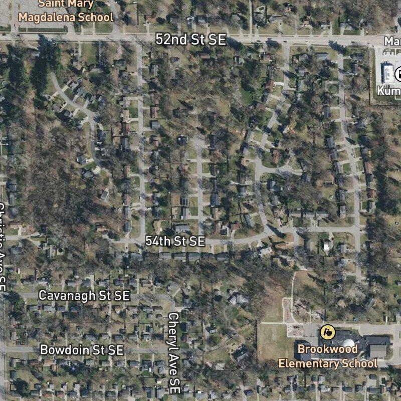 Beasecker Plat No.1 is a tight 6-acre subdivision where homes cluster around quarter-acre lots in the 52nd St & Kalamazoo Ave Area, with a median value around $322K. The bones are straightforward: small, walkable to a transit stop 4 minutes on foot, and surrounded by genuine density—24 restaurants and 42 grocery stores within a couple miles, not promises. A restaurant or coffee shop is close enough that you're not planning a drive. Gerald R. Ford Airport sits 11.5 minutes away, and downtown Grand Rapids is 16 minutes out, which matters if you're commuting either direction. Schools fall under Kentwood Public Schools. The neighborhood doesn't lean on park access as its draw—Pinewood Park is a 14-minute walk—but it's the kind of place where you're buying proximity to actual things, not potential.