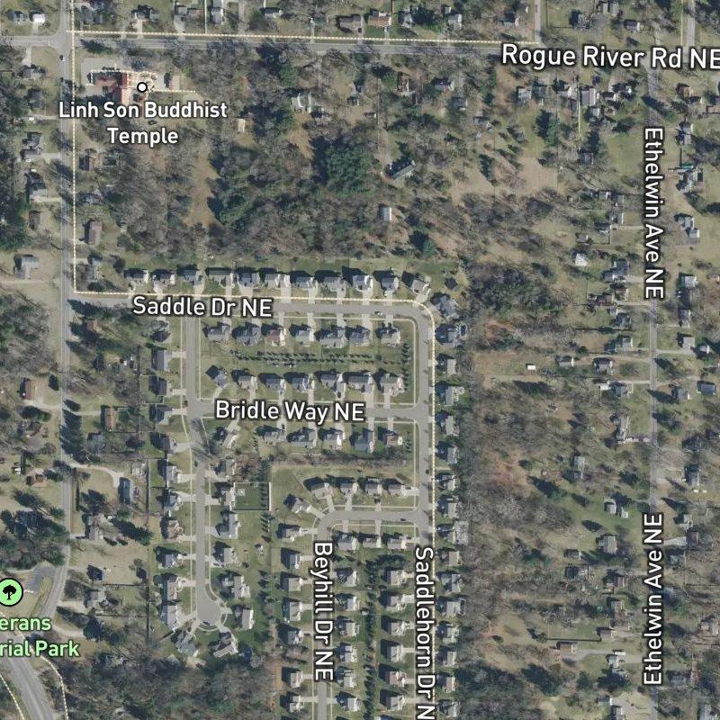 You'll walk up expecting a standard subdivision and find yourself on 11 acres where the lots are tight enough to feel connected but plenty of space remains for parks—12 of them within a mile, starting with Veterans Memorial Park just five minutes on foot. The subdivision sits right where Belmont Avenue and Northland Drive meet, close enough to downtown Grand Rapids that your commute clocks in around 15 minutes, yet far enough out that homes run around $610K and you're not paying city premiums for quiet mornings. Groceries and restaurants dot the area within walking distance—a dozen of each within a mile—and if you're the type to launch a boat, the Rogue River Mouth Launch is barely over a mile away. Kids feed into Rockford Public Schools, and the whole setup sits in the Belmont Avenue and Northland Drive area, which means you've got real access without sacrificing the kind of breathing room that makes a subdivision feel like an actual place to live.