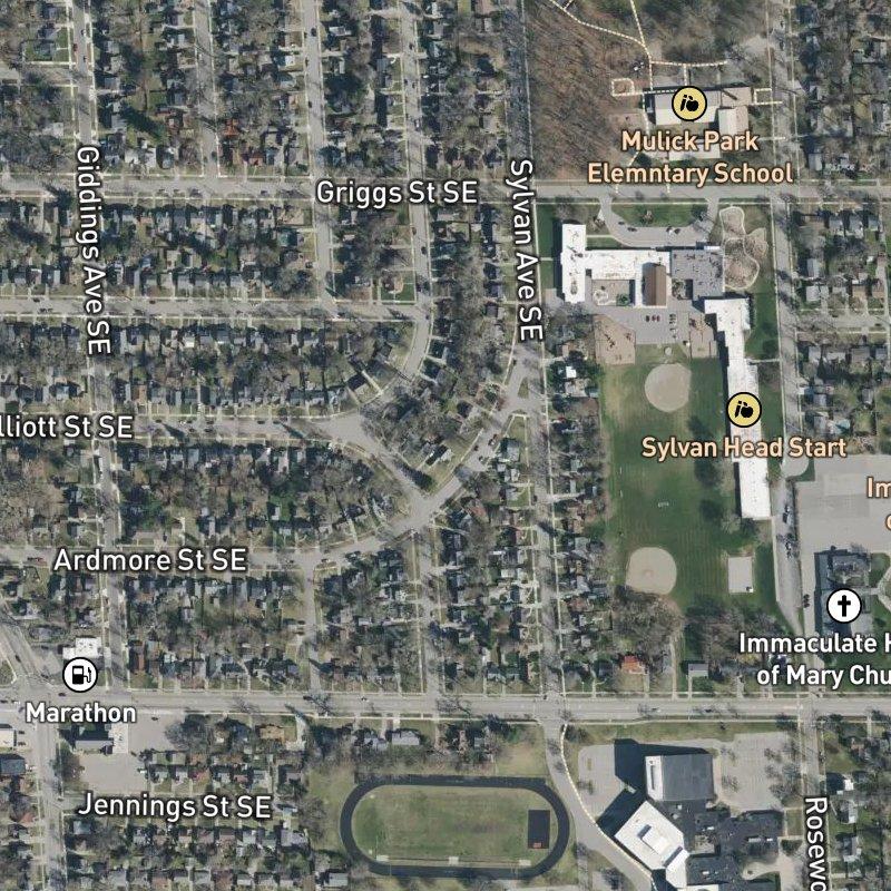 Belvedere Heights sits on 24 acres where you can walk to Mulick Park in five minutes, grab coffee a mile down the road, or catch The Rapid practically from your front door—the kind of location that makes an 11-and-a-half-minute drive to downtown feel less like commuting and more like a choice. The subdivision's modest lots and brick-and-frame homes, most built in the mid-twentieth century, give the streets a lived-in character you don't manufacture; 18 restaurants and a grocery within a mile means the neighborhood handles its own needs without fanfare. Homes run around $287K, and Forest Hills Public Schools serves the area. It's the edge of Southeast End—close enough to everything that matters, far enough away that you still have room to breathe.