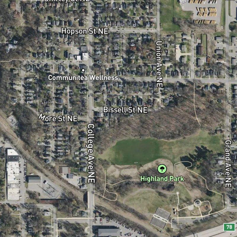 What surprises people about this subdivision is how much is actually within arm's reach—you're talking about four hundred-plus restaurants within a mile, a transit stop practically at your doorstep, and Highland Park itself just a two-minute walk away. Bissell & Sons sits in the heart of Highland Park, a fourteen-acre platted community where the lots average a tenth of an acre, keeping everything dense and walkable. Downtown Grand Rapids is less than five minutes away by car, and a coffee shop or dinner spot is never more than a short stroll. The nearby park has sledding hills, a splash pad, trails, and disc golf—the kind of green space that makes a small footprint feel spacious.