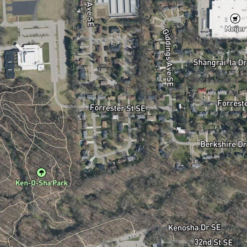 If I'm being honest, the thing that sold me on Bittersweet Acres was how close everything actually is—you're three minutes on foot from Ken-O-Sha Park, where the Plaster Creek Trail kicks off and there's that wild wooden Amplifier structure that lets you hear the creek echo back at you. The subdivision itself is 15 acres of mid-sized lots (about a third-acre each) where homes run around $451K, and the location is genuinely convenient—downtown Grand Rapids is a 12-minute drive, the airport about 15, and you've got a grocery store a short walk away with dozens more within a couple miles. There's real stuff to walk to: coffee shops, over 40 restaurants scattered around the neighborhood, five parks within a mile. It's part of Ken-O-Sha Park, that stretch of southeast Grand Rapids where the city's character actually feels grounded, and kids in the area go to Grand Rapids Public Schools. What seals it, though, is that you're not stuck—you're fifteen minutes from the airport and still close enough to nature that you can literally hear the water.