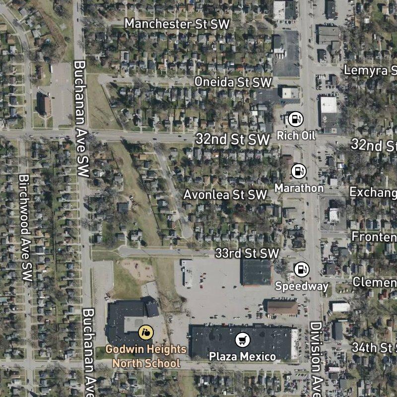 Blissfield Homes sits on 17 acres with tight lot sizes—roughly a quarter acre per home—making this a compact, efficient subdivision where neighbors are genuinely close by. Homes here run around $254K, and you're minutes from downtown Grand Rapids at just 8 minutes' drive, with Gerald R. Ford airport reachable in 19 minutes. The neighborhood has real walkable reach: a restaurant is a 10-minute walk away, a coffee shop about 14 minutes, and Hillcroft Park is practically next door at a 6-minute walk. Three parks sit within a mile, and 36 restaurants and 36 grocery stores cluster nearby—density that actually works. Transit access is immediate, steps from home. Godwin Heights Public Schools serves the area. What makes Blissfield Homes work is the math: small lots, close amenities, and real proximity to the city without living in it.