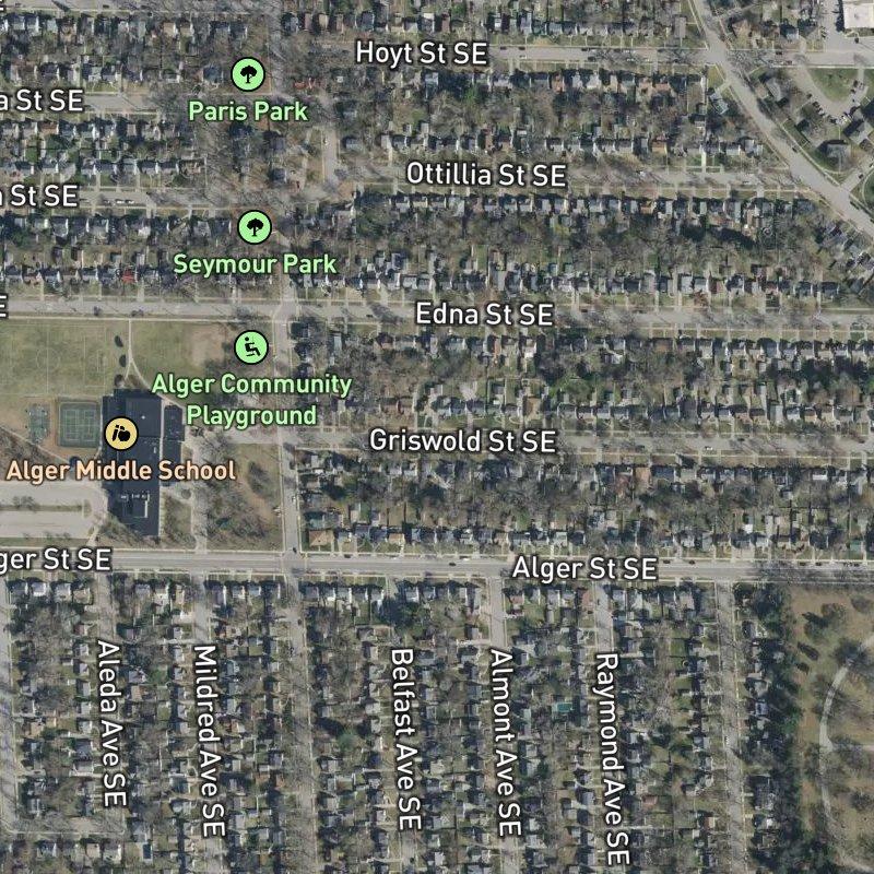 You can walk to coffee, groceries, and dinner in about five minutes from Bosma Add. No.4 — that's the whole vibe here. This six-acre subdivision sits right in the heart of Alger Heights, where 36 restaurants and a solid grocery selection are all within a mile, and the Grand Rapids Public Schools district covers the area. Homes run around $293K on modest lots (about 0.15 acres each), which means you're close to neighbors but also close to everything that matters — Seymour Park is a three-minute walk, downtown is 11 minutes away, and the airport is just over 17 minutes. The walkability score sits at 6.8 overall, with dining and transit each hitting 8/10, so you're trading square footage for access. It's the kind of place where you can actually live without a car for most errands, if that's your thing.