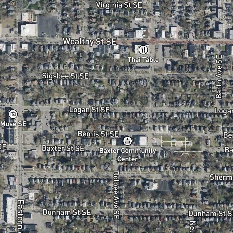 ...and what makes Boyd & Van Leeuwens Plat work is the sheer convenience of it—a 5-acre pocket in Baxter where you're steps from a transit stop, a two-minute walk to groceries and coffee, and somehow also surrounded by 18 parks within a mile. The Wealthy Theatre and Joe Taylor Park are genuinely close by, and downtown Grand Rapids sits about five minutes away by car. Homes here run around $170K on average, with lot sizes hovering just under a tenth of an acre—tight enough that you're living in the thick of things, but with the bones of older neighborhoods: American Foursquares, Craftsman cottages, Queen Annes. The walkability score reflects what you'd expect from proximity to Wealthy Street's locally-owned restaurants and shops—dining options top out at 10/10, and you won't run out of choices. It's the kind of place where you're never far from anything, and that matters if you want urban proximity without the sprawl. Forest Hills Public Schools serves the area.