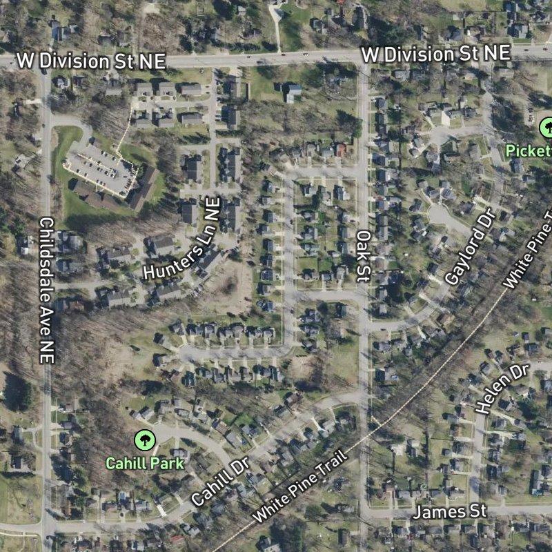 Broookmark sits on fourteen acres with lots that average just over a fifth of an acre each—small enough to keep maintenance manageable, big enough to feel like your own plot. You're about twenty minutes from downtown Grand Rapids, which means the city's close enough for a weeknight dinner but far enough that you're not living on top of it. Cahill Park is a three-minute walk away, and there are twenty-six parks within a mile if you want options. The Rogue River boat launch is half a mile down the road, so getting on the water doesn't require a production.
