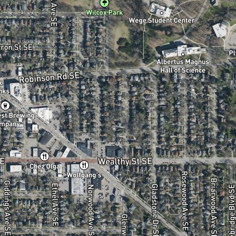 Most West Michigan subdivisions blur together—straight streets, predictable lots, nothing much to distinguish one from the next. Bundy Add. sits in Eastown, a 70-block neighborhood with over 130 local businesses, and the six-acre plat reflects that density. Homes run around $410K on quarter-acre lots, with restaurants and coffee shops literally steps away and a transit stop at your corner. Wilcox Park, with its splash pad and playground, is a four-minute walk.