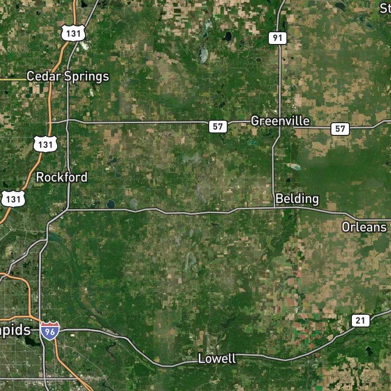 The Byrne Park Area sits on over nine thousand acres of Grattan township farmland and lake country, where Big Pine Island Lake's public boat launch is practically at your doorstep and the nearest grocery store is nearly four miles away—a real measure of how rural this corner of Kent County actually is. Ranch homes with simple exteriors dot the landscape, anchored by waterfront property on Cowan Lake, Green Lake, and Twin Lakes, and Big Pine Island Lake itself sits less than half a mile from most addresses here.
