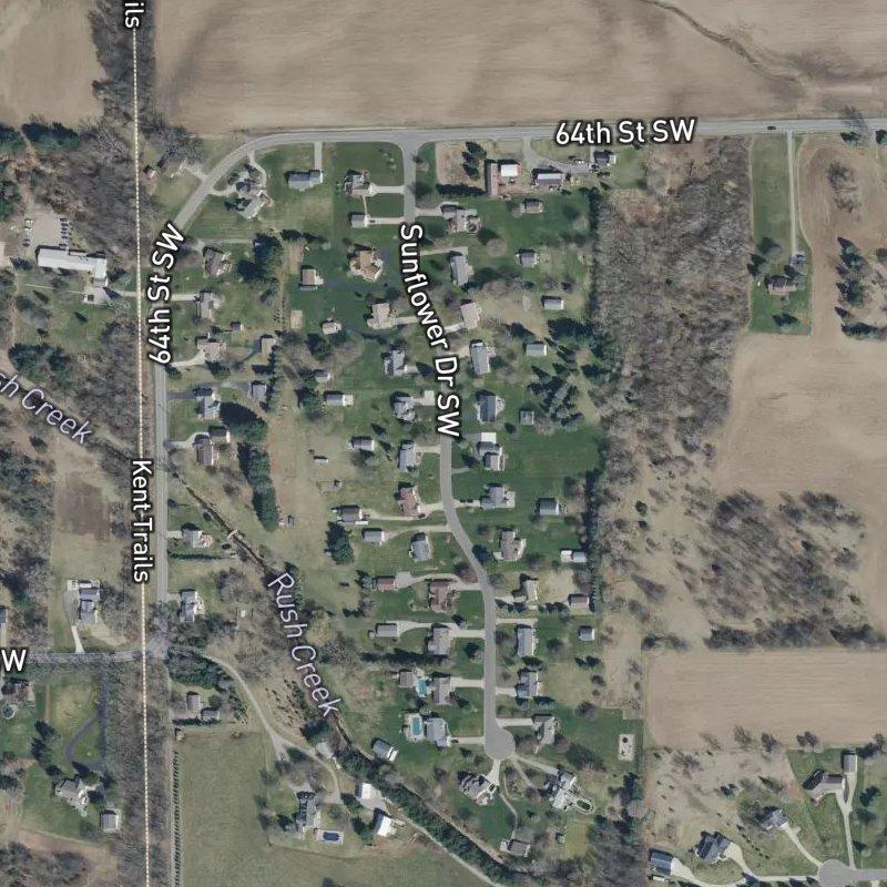 The tree line bordering Byron Estates No. 2 marks the edge of a 26-acre subdivision where each lot averages just over an acre—enough room to breathe without vanishing into the woods. You're about 16 minutes from downtown Grand Rapids, which means you get the access without the address, and a grocery is less than a mile away when you need it. Homes here run around $544K, and they're served by Byron Center Public Schools. The nearest restaurant is a 15-minute walk, though 126 options sit within a mile if you're not in the mood to stroll. A coffee shop is less than a mile down the road, and Kent Trails park tops out at about a mile and a third away—close enough for a real outing, far enough that the subdivision stays residential and rooted rather than crunched.