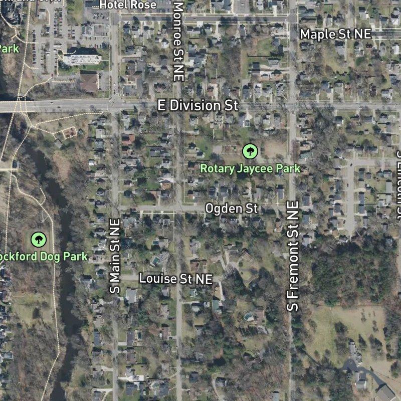 You're within a four-minute walk of a coffee shop or restaurant, and the grocery is just eight minutes on foot—the kind of proximity that means you can dash out without a car for the everyday stuff. Rotary Jaycee Park sits practically next door, a two-minute walk, and there are 27 parks within a mile if you want options. The subdivision itself spans nine acres with lots averaging about a quarter-acre each, homes here running around $348K, and you're tied into Rockford Public Schools. Downtown Grand Rapids is a smooth 20-minute drive, and if the river calls, the Rockford-Rogue River boat launch is less than half a mile away—close enough that launching feels like part of the weekend routine rather than a trip.