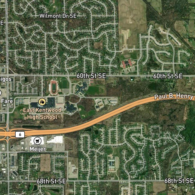 Life here moves at a different pace than the city center, but not because you're far from it—downtown Grand Rapids sits about 19 minutes away, and the airport is under 12 minutes. Campus Estates feels suburban in scale, spread across 438 acres with room to breathe, yet groceries, coffee, and restaurants are all within steps, and a transit stop sits nearby for those who need it. There are 108 restaurants and 30 grocery stores within a mile or two, so despite the neighborhood's residential character, you're not sacrificing convenience. Homes here run around $321K, placing them within reach for people serious about staying put, and you're covered by Kentwood Public Schools. Three parks sit within walking distance, with an unnamed park just a 10-minute walk away. Gaines Charter Township itself is steady and growing, friendly to development without feeling overdone—the kind of place where new construction blends into existing residential fabric rather than transforming it.