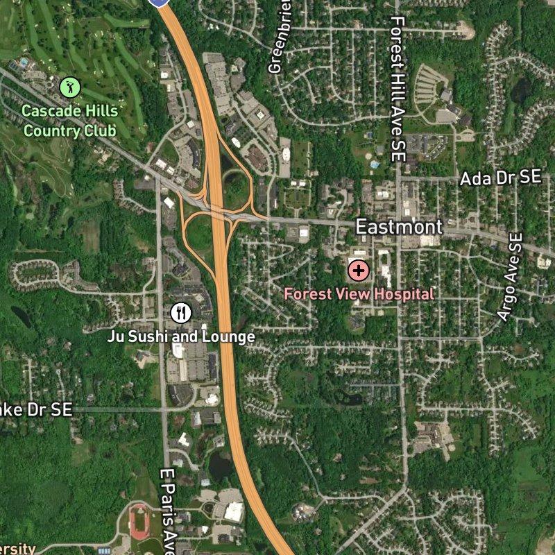 Driving through Castle Hills feels like moving through a well-ordered grid where the lots are sized for actual living—a third of an acre each across the 52-acre plat—rather than for showing off. You're about 12 minutes from downtown Grand Rapids, which means the subdivision catches the convenience of proximity without the noise, and the airport sits just under 15 minutes away if you're traveling often. A grocery store is close enough for a short walk, and a restaurant lands within four minutes on foot; there are 18 more dining spots within a mile if you want options. Forest Hills Public Schools serves the area, and homes typically run around $386K. The nearest proper park—Forest Hills Park—takes about 10 minutes to reach on foot, while Hidden Lake sits 1.6 miles out if you're after water access. It's the kind of place where the infrastructure is there without being showy about it.