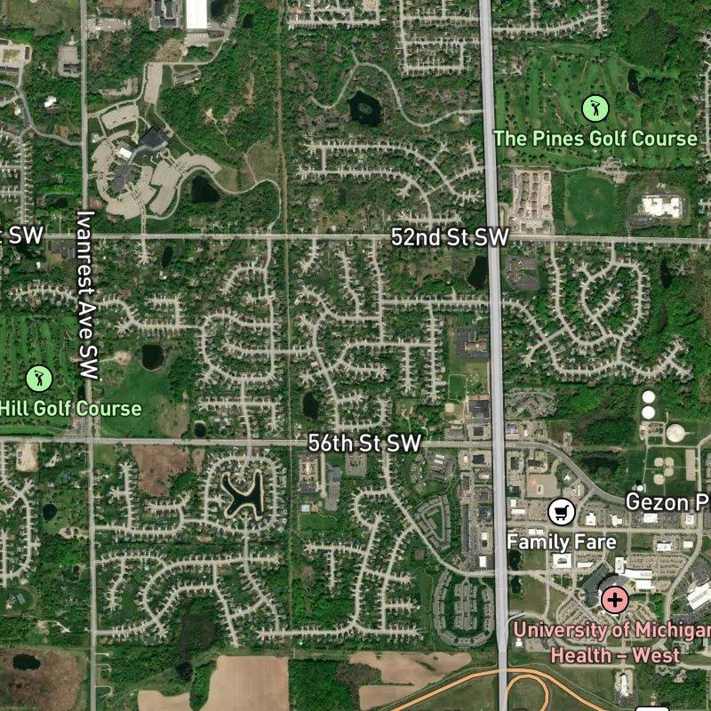 People often think of West Michigan subdivisions as quiet cul-de-sacs far from everything, but Chalet Estates breaks that mold—you're actually minutes from downtown Grand Rapids, with a grocery store and a few solid restaurants within a short walk, and a coffee shop just five minutes on foot. The 77-acre development sits within Koster Estates Area, where 138 restaurants and 30 grocery stores across a two-mile radius mean you're never stuck wondering where to eat or shop. Three parks dot the immediate neighborhood, and Kent Trails is a 14-minute walk away if you want a real outdoor loop. Homes here run around $475K, and the schools fall under Kent ISD. Most mornings you can be downtown in about 15 minutes, which keeps things from ever feeling isolated—but the land itself feels spacious and settled, not cramped.