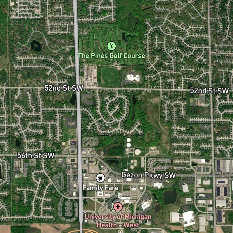 Chalet Estates East looks like a quiet residential pocket on the map, but step into the 65-acre subdivision and you're actually a short walk from everything—restaurants, a grocery store, transit, and Gezon Park all within a few minutes on foot. Homes here run around $540K, and the location hits that sweet spot of being genuinely accessible: downtown Grand Rapids is 14 minutes away by car, the airport about 20. You're surrounded by 132 restaurants and four parks within a mile, so the "isolated subdivision" thing doesn't really hold up once you start exploring. Kent ISD serves the schools, and the subdivision sits within the Country Charm Estates Area, which gives you a sense of the broader character—a real neighborhood, not a stray development thrown down at the edge of nowhere.