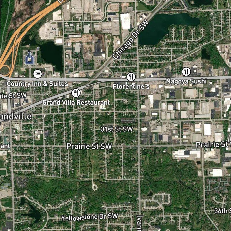Peck Street Park sits practically on the doorstep here—a six-minute walk from most homes in this 69-acre subdivision, where lot sizes cluster around a third of an acre and the median home value runs about $311K. You're close enough to grab coffee in eleven minutes, and there are forty-eight restaurants within a mile, some of them steps away; groceries are 1.4 miles out if you need them, though the real density is nearby with thirty-six stores within two miles. Downtown Grand Rapids is thirteen minutes away by car, which matters if you work there, and the airport sits twenty-five minutes south. Transit stops at your doorstep. Three parks total within walking distance, plus Grandville Launch for boats is just over a mile down the road. This part of the Rose Sub. Area feeds into Grandville Public Schools—tight enough to downtown and amenities that you don't feel stranded, but far enough that the subdivision actually breathes.