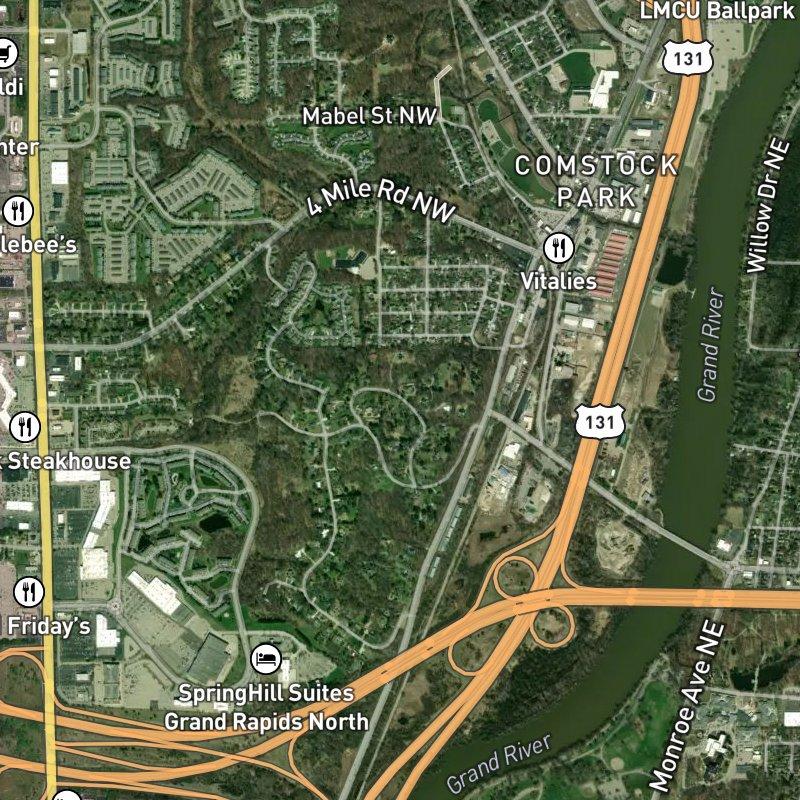 Most people hear "subdivision in West Michigan" and picture vinyl ranch houses squeezed shoulder-to-shoulder on quarter-acre lots. Closterhouse & Woolstons Plat of the Highlands is the opposite—51 acres where homes sit on an average of 1.71 acres each, so you've actually got land around you. Homes here run around $391K, and the setting keeps things spacious without pushing you into the middle of nowhere: downtown Grand Rapids is just 10.7 minutes away, a restaurant is a 6-minute walk, and Lamoreaux Park sits 4 minutes on foot. The neighborhood anchors into Greenview Plat Area and feeds into Comstock Park Public Schools. With 186 restaurants within a mile and 6 parks equally close, the trade-off is clear—you get breathing room *and* access. A boat launch at Comstock Riverside Park sits 1.9 miles south if you're the type to keep a kayak in the garage.