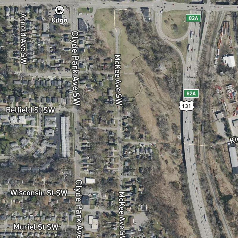 Drive through Clyde Park Add. and you'll notice right away how the blocks fit together—tree-lined streets, modest homes on tight lots, the kind of place where you're never far from anything that matters. It's forty-four acres of consistent rhythm in Roosevelt Park, where a transit stop sits at your doorstep and downtown Grand Rapids is just over six minutes away by car. Seventy-eight restaurants and thirty grocery stores within a couple miles mean your errands stay local, and the Grand Rapids Bike Park is a ten-minute walk if you want to burn some energy. There's real density here—seven parks within a mile—but it doesn't feel cramped; it feels connected.