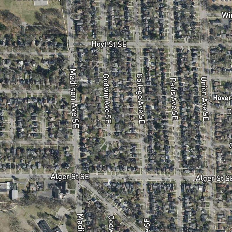 If you're looking at College Ave. Plat, you're really looking at a slice of Garfield Park—the neighborhood that runs thick with Mexican restaurants along Division Avenue, historic Queen Anne and Dutch Colonial homes from the 1800s, and enough murals to keep your eyes moving. The 8-acre subdivision sits on modest lots (averaging 0.18 acres), and homes here run around $361K. What matters is proximity: downtown Grand Rapids is 9 minutes away, Garfield Park itself—29 acres of ballfields, courts, and a splash pad—is a short walk, and you've got 60 restaurants and 30 grocery stores within a mile. Transit access is solid if you need it, with a bus stop a 6-minute walk away. The bones are straightforward: older architecture, tight geography, real neighborhood density, and the kind of location where you can walk to dinner without it being a production.