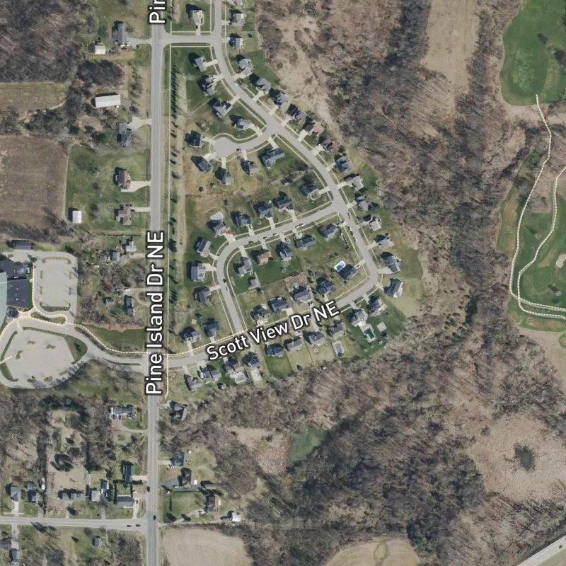 An 18-acre plat in the Grand Oaks No.2 Area, Country Club Village sits on quarter-acre lots where homes run around $454K and you're roughly 13 minutes from downtown Grand Rapids. The subdivision feeds into Comstock Park Public Schools, and there's a small park just a short walk away—the kind of place where you can step outside and be on grass without much fuss. A restaurant sits about a mile down the road, a coffee shop not far beyond that, and if you need the full grocery run, it's just over two miles out. What sticks with you, though, is the simplicity of it: no sprawl, no pretense—just a solid residential pocket that works, tucked between daily errands and the airport a half hour off.