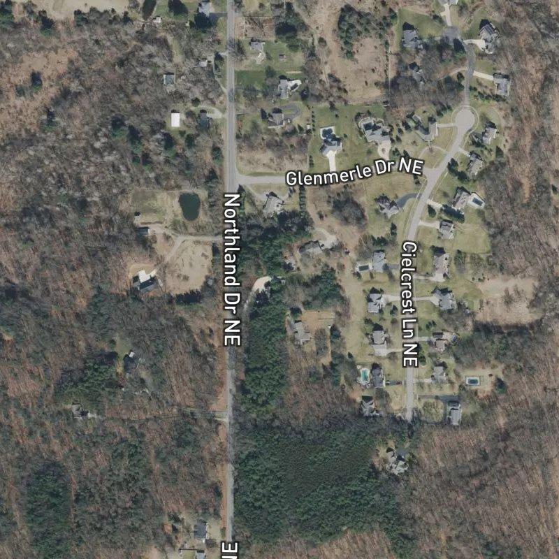 Country Hills looks like a quiet subdivision until you realize you're sitting on nearly two acres per lot—enough space to actually breathe without seeing your neighbor's mailbox. The 12-acre plat in the Belmont Ave & Northland Dr Area carries homes around $506K, with Rockford Public Schools serving the area. Grocery and coffee are under two miles away, and five parks huddle within a mile, including the Sheriff Equestrian Center just a short walk off, so if you've got horses or just like watching them, that's convenient. Downtown Grand Rapids runs about 20 minutes south; Gerald R. Ford Airport is roughly half an hour. It's the kind of place where you get actual land without the full rural commute, and the river access at Rockford—1.5 miles away—means launching a boat doesn't require a production.
