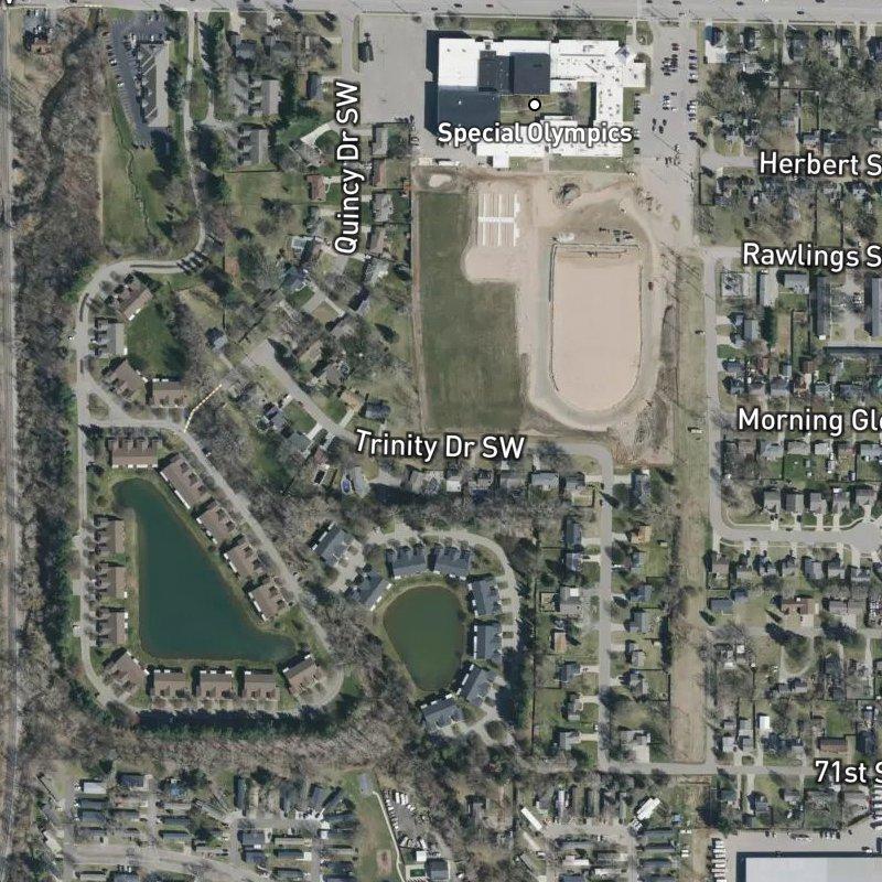 ...and what really stands out is how it all fits together on just nine acres. The lots here average a third of an acre each—enough breathing room without feeling sprawling—and homes run around $293K. You're close enough to grab a coffee shop within a couple of miles, but there's a restaurant four minutes away and groceries even closer, which means the everyday stuff doesn't require much of a trip. A transit stop is practically at your front door, and downtown Grand Rapids is about thirteen and a half minutes out.