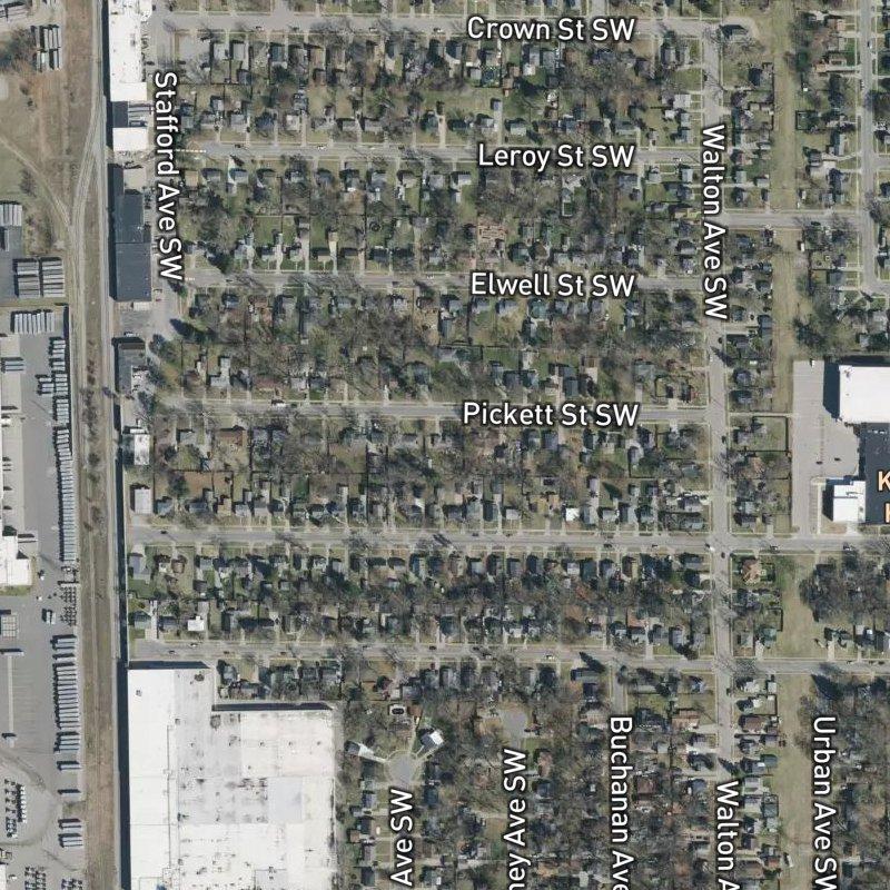 What surprises people is how much neighborhood there is in just six acres. Darby Sharpsteen Plat is a tight, established subdivision where quarter-acre lots mean you're living close to your neighbors—the kind of place where a short walk gets you to a grocery store in four minutes, a restaurant in six, or Kelloggsville Park in eight. With over a hundred restaurants and three dozen grocers within a mile, you're not stranded; you're woven into something with real density and access.