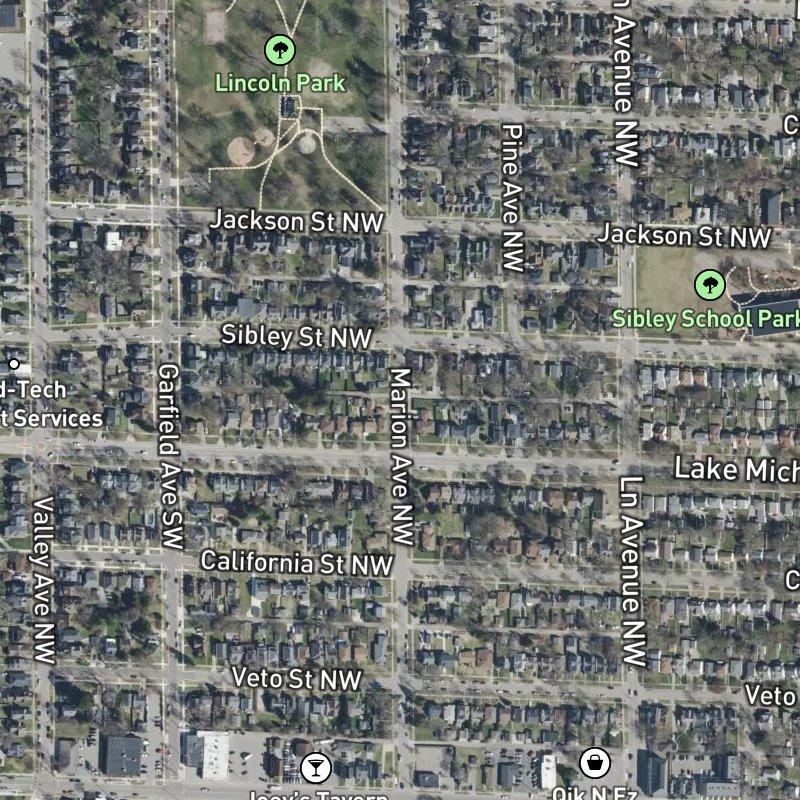 You're within a three-minute walk of restaurants and steps from transit, which means the daily calculus here skips the "where do I eat" and "how do I get downtown" questions that define most neighborhoods. Davis Turner & Carrol Sibley St. Add. is a 10-acre subdivision of Colonial and Traditional homes on lots just under 0.13 acres each, built with aluminum siding and currently valued around $278K. The neighborhood sits within John Ball Park, where 15 parks cluster within a mile—including Sibley School Park, a four-minute walk away.