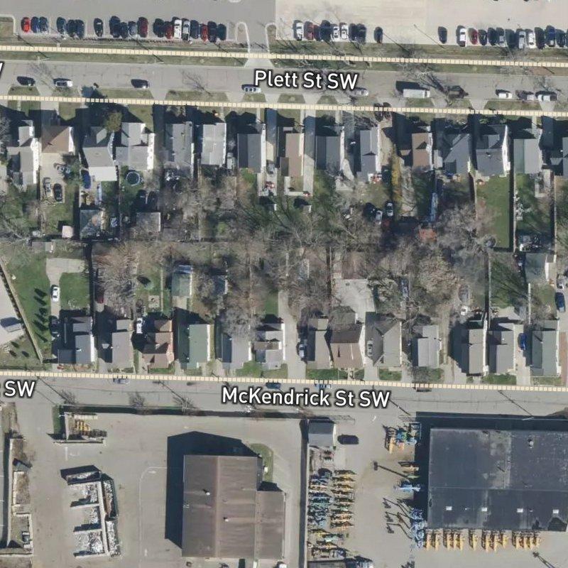 Just south of downtown, De Vries 3rd Add. sits as a compact 4-acre subdivision where corner lots give way to modest single-family homes—bungalows and Cape Cods mostly—that run around $130K. The neighborhood feels walkable in the immediate sense: a transit stop is two minutes on foot, and you're a nine-minute walk from restaurants; grocery options line up within less than a mile. Roosevelt Park itself—with its soccer field, skate park, and picnic areas—is a 12-minute walk, and there are nine parks scattered within a mile of here. Downtown Grand Rapids is just 5.8 minutes by car, while Gerald R. Ford airport sits at about 21 minutes. Lot sizes average 0.13 acres, so homes sit close to the street and to each other, characteristic of older residential plats in the area. Schooling runs through Godfrey-Lee Public Schools.