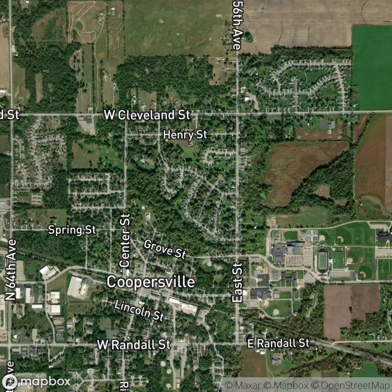 Sitting in the farmland and low hills of West Michigan between Grand Rapids and the lakeshore, Deer Creek Estates spreads across 57 acres of residential land where the lots run around a third of an acre each—tight enough to keep things compact, roomy enough that you're not stacked on top of anyone. The homes here are traditional in style, and you're roughly 25 minutes from downtown Grand Rapids if you need the city, or about 27 minutes south to Grand Haven beach when you want the water. The neighborhood has real proximity to everyday stuff: a coffee shop is a 5-minute walk away, restaurants cluster within a mile, and Main Street Park sits just down the block. Median home values sit around $441K, and the area feeds into Coopersville Area Public School District, making it the kind of spot where you get suburban ease without the isolation.
