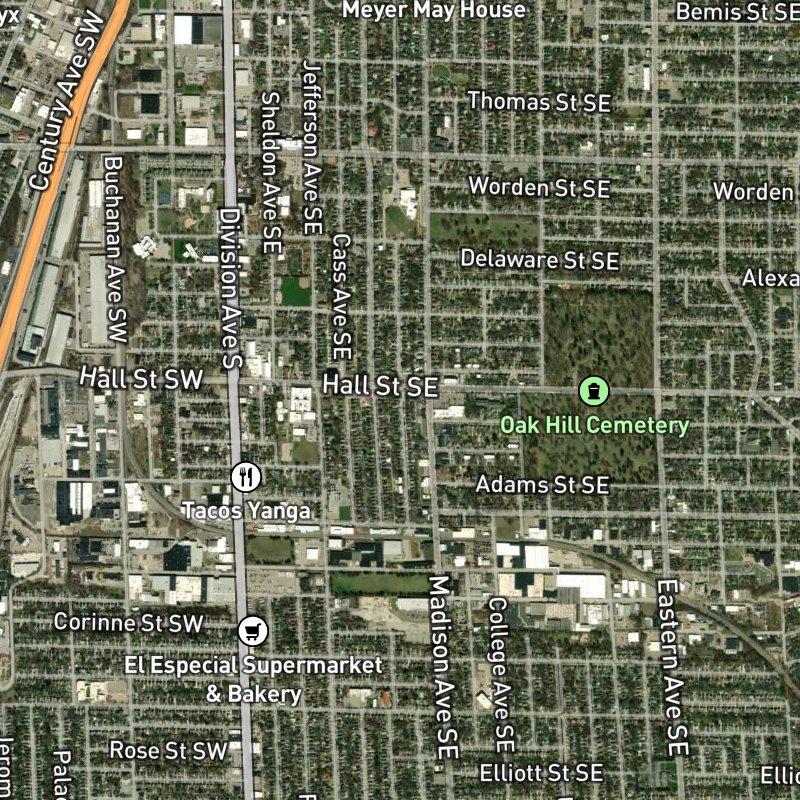 Early evening light catches the brick and siding facades along these streets, when the day's noise settles and you can hear the actual neighborhood—kids calling across yards, someone grilling two blocks over. Doran's Assessor's Plat is 155 acres of traditional homes in Southeast Grand Rapids, rooted in the Seeds of Promise area where a real community transformation effort has been unfolding for two decades. A grocery is steps away, as are restaurants and a coffee shop; downtown is five minutes by car. The nearest park, Rasberry Field, is a short walk, and nine more sit within a mile—the kind of density that means green space isn't something you drive to find. Homes here run around $278K, and Grand Rapids Public Schools serves the area. Transit access from your front step, 661 restaurants within a mile, 84 grocers within two—these aren't amenities bolted on; they're the actual texture of living here, the ordinary infrastructure that makes a place work.