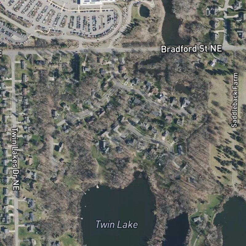 Heading north on Cascade Road, you'll spot the entry to Eastlake Estates tucked into a 31-acre parcel where Leffingwell-Twin Lakes meets the Beltline corridor. Lots here average about half an acre—enough breathing room without feeling isolated—and homes run around $602K. Church Lake sits less than a mile away, and a handful of restaurants cluster within walking distance, so you're not entirely dependent on the highway for dinner. Downtown Grand Rapids is a 10-minute drive, and Gerald R. Ford Airport about 18 minutes, which matters if you travel regularly. The subdivision falls within Forest Hills Public Schools. What you're really buying into is a platted neighborhood with decent lot sizes in a part of town that's equal parts convenient and ordinary—close enough to the Beltline's shopping and dining to avoid feeling remote, but not so close that the commercial sprawl drowns out the residential feel.