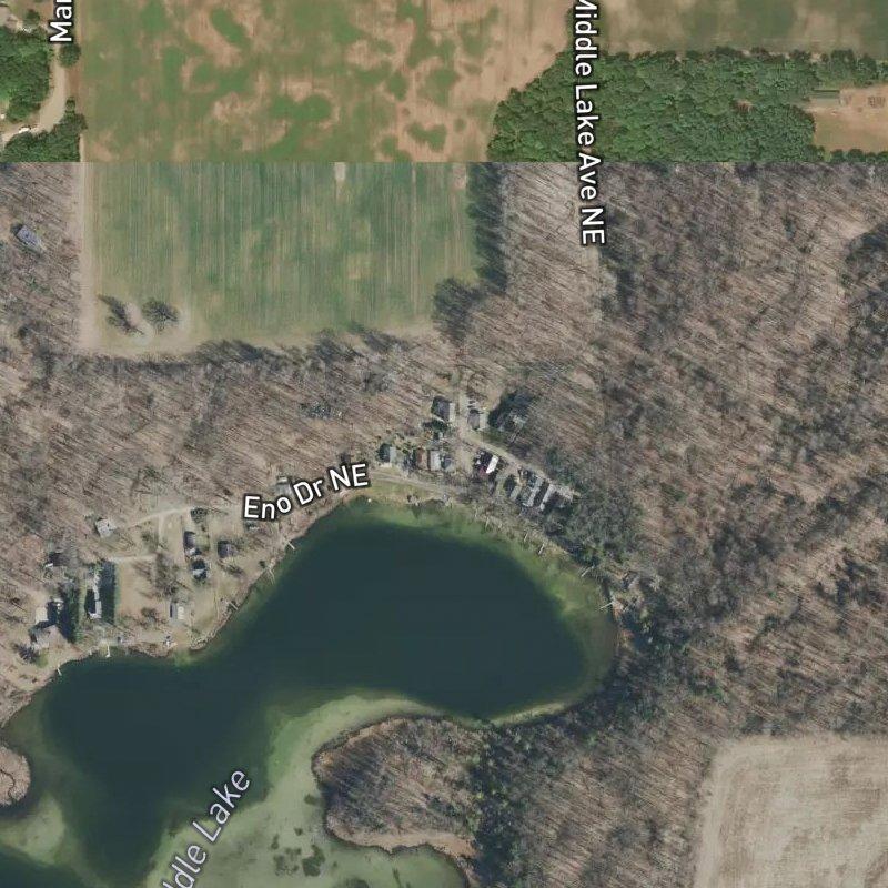 Echo Park sits on eight acres where lot sizes hover around a quarter-acre—compact enough that you're not burning a tank of gas to know your neighbors, spacious enough that you've got some actual ground. Homes here run around $213K, and you're roughly half an hour from downtown Grand Rapids when you want the city. Cedar Springs Public Schools covers the area. The nearest grocery is about four miles out, which is the kind of distance that makes a quick trip feel deliberate rather than automatic, and Fisk Knob park sits a mile and a half away for when you need to stretch your legs without leaving the region entirely.