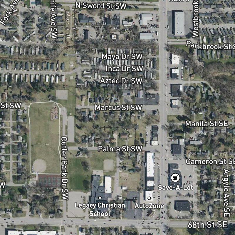 Life here moves at a practical clip—a grocery store steps away, a transit stop three minutes on foot, downtown Grand Rapids just fourteen minutes if you drive. F. D. Cutler Plat is an 11-acre subdivision where the lots average just under a third of an acre, tight enough that errands don't require much planning but spacious enough that you're not living in anyone's pocket. Homes run around $248K, and you're zoned for Kentwood Public Schools. There's a park a short walk away and fifty-four restaurants within a mile—the kind of density that means dinner doesn't require a production. The neighborhood sits within the Palma Plat Area, part of the larger grain of this corner of West Michigan where things are compact and close at hand.