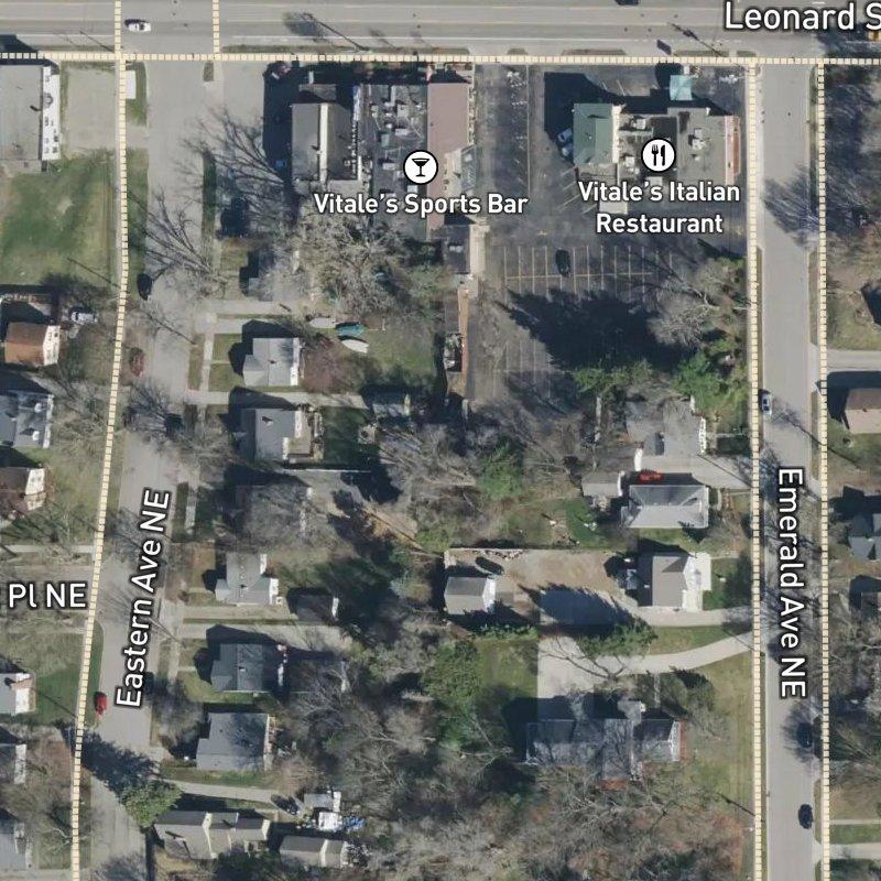 The rhythm here is set by proximity: restaurants step away, transit at your doorstep, downtown Grand Rapids just six and a half minutes by car. F. E. Holts Sub. sits tight within Highland Park, a one-square-mile residential pocket where four acres of modest lots—each averaging a fifth-acre—create a dense, walkable feel without the sprawl. With 168 restaurants within a mile and a transit stop practically on the corner, daily errands don't require much planning. Eastern Park lands a nine-minute walk away, one of eight parks within a mile that anchor the neighborhood's green space.