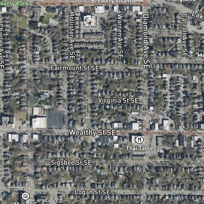 You're in the thick of it here—Cherry Street's restaurant scene is basically your front yard, and you can walk to groceries, coffee, and transit without thinking twice. Homes run around $423K on lots that average a thirteenth of an acre, which means you're buying location and walkability over sprawl. Forest Hills Public Schools serves the area, and downtown Grand Rapids is just over five minutes away.