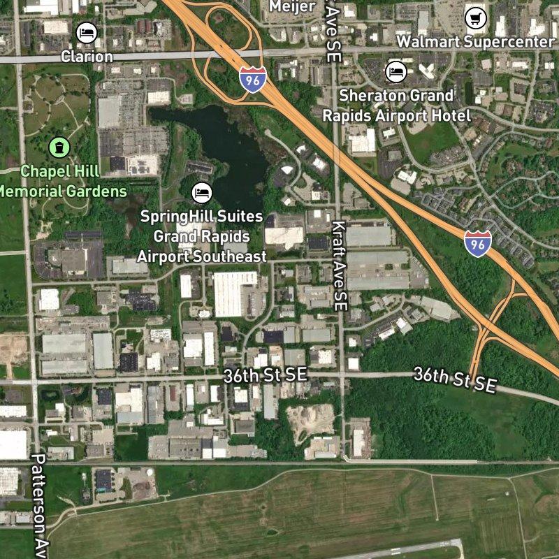 Foremost Industrial Park No. 1 spreads across 58 acres in Cascade charter township, making it feel removed from the suburban crush even though downtown Grand Rapids sits just 16.5 minutes down the road. The daily rhythm here is industrial—warehouses, light manufacturing, and distribution centers define the landscape—which means the place runs on truck traffic and loading docks rather than foot traffic, though groceries and a coffee shop are both within a 9- to 11-minute walk if you need them. Gerald R. Ford International Airport is 9.2 minutes away, a genuine advantage if your work ties to logistics or air freight. The subdivision is served by West Michigan Aviation Academy schools, and over 130 restaurants and three dozen grocery stores cluster within a 1–2-mile radius, so amenities aren't scarce—they're just engineered for car access. This is the kind of place where land is the point: 58 acres of platted space, straightforward zoning, and straightforward business.