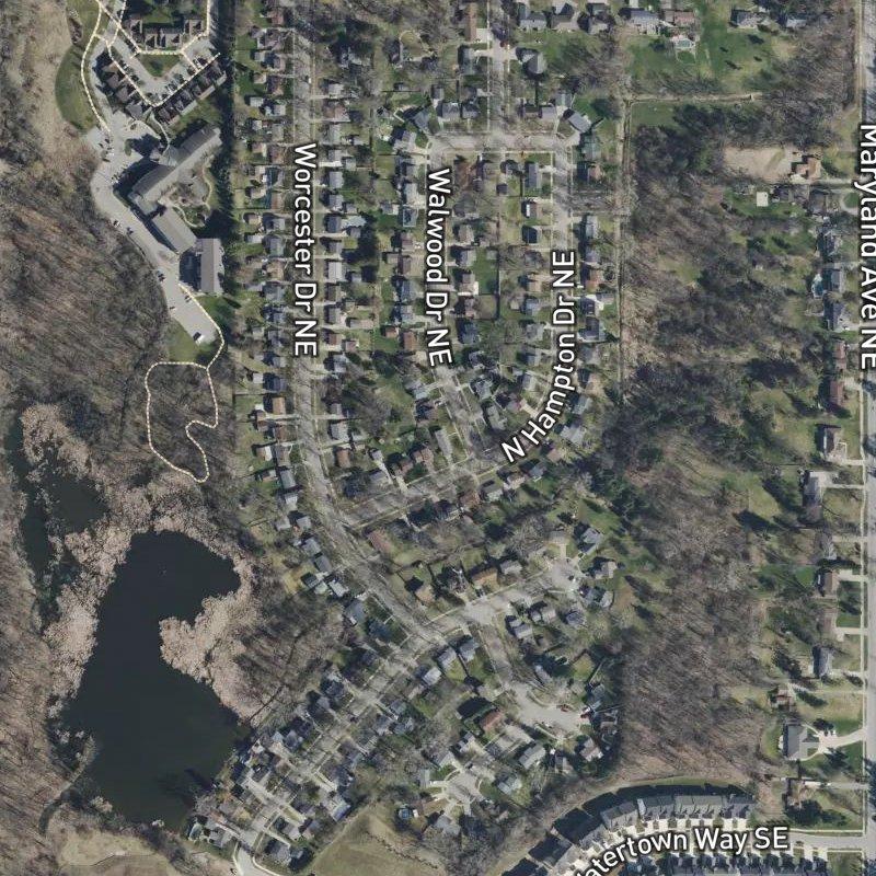 You're driving through a quiet pocket of Northeast where 27 acres of single-family homes sit just under 11 minutes from downtown Grand Rapids—close enough to catch dinner downtown, far enough to actually breathe. The subdivision feels unhurried: tree-lined streets, wooded yards, the kind of place where you can grab your morning coffee about a mile down the road and hit any of six restaurants within walking distance without feeling like you've left the neighborhood. Ball Perkins Park sprawls less than a mile away, its old-growth groves full of deer and foxes if you're paying attention. Transit is right here—a stop steps from home—while Grand Rapids Public Schools feeds the area, and Gerald R. Ford Airport sits just over 18 minutes out. Homes typically run from the low-$200,000s into the low-$500,000s, the kind of real estate that doesn't demand you choose between affordability and access.