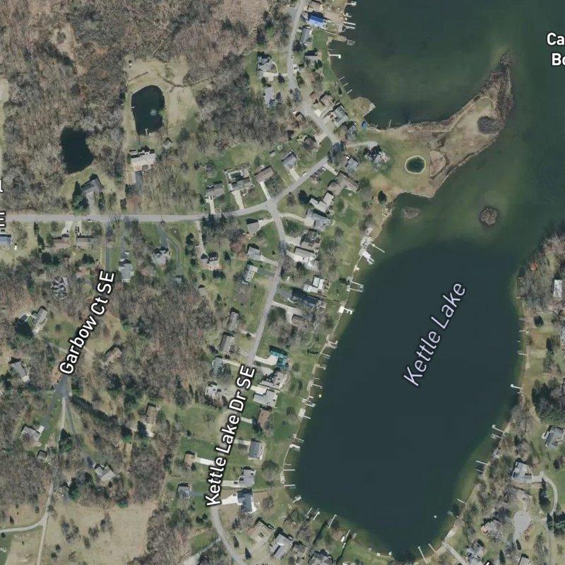 What catches people off-guard about Garbow Plat is how water-centric it feels despite being a small, 14-acre subdivision—Kettle Lake sits just a tenth of a mile away, and Campau Lake's public access and boat launch are close enough for a quick morning run. Homes average 0.45 acres, run around $515K, and the area feeds into Caledonia Community Schools. An 18-restaurant corridor within a mile means dinner is a 5-minute walk, though the nearest grocery requires a 3.9-mile drive.