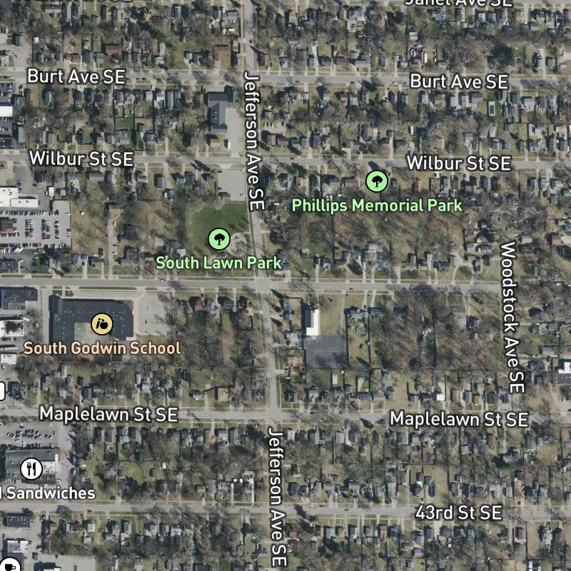 The first thing you should know: you're ten minutes from downtown Grand Rapids, but you won't feel it—the subdivision sits on 37 acres of modest lots (about a third acre each) where the pace is residential and decidedly local. Homes here run around $239K, which buys you proximity without the price tag of the city proper. Transit is literally steps away, and so is South Lawn Park, which anchors the neighborhood's green space; four more parks sit within a mile. Grocery stores and restaurants are everywhere—48 of each within reasonable distance, with a coffee shop a three-minute walk and dinner options even closer—but the real character lives in the everyday smallness: the kind of place where errands are easy and you're not fighting traffic to grab what you need. Kelloggsville Public Schools handles K–12, and the subdivision itself is part of the larger Godwin Heights Add. Area, one of those quietly sensible West Michigan neighborhoods that doesn't announce itself but doesn't need to.