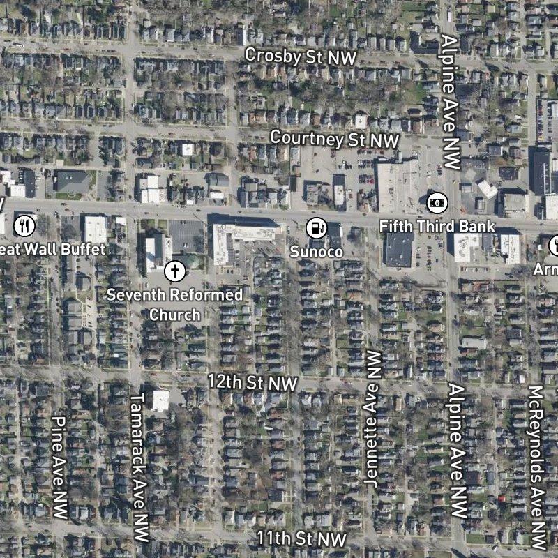 Gelock & Van Brees Add is a thirteen-acre subdivision where lot sizes hover around a tenth of an acre—tight enough that you're genuinely surrounded by neighbors, spacious enough that it doesn't feel cramped. The nearest restaurant is a two-minute walk, a grocery store three minutes on foot, and Harrison Park sits nine minutes away with baseball diamonds, tennis courts, and a swimming pool. Transit stops are steps from your door, and downtown Grand Rapids is a straight shot down the road—six and a half minutes by car if you need to be there. Homes here run around $241K, which is what buys you in this part of West Grand, where the furniture industry's working-class legacy still shapes the street layout and the density.
