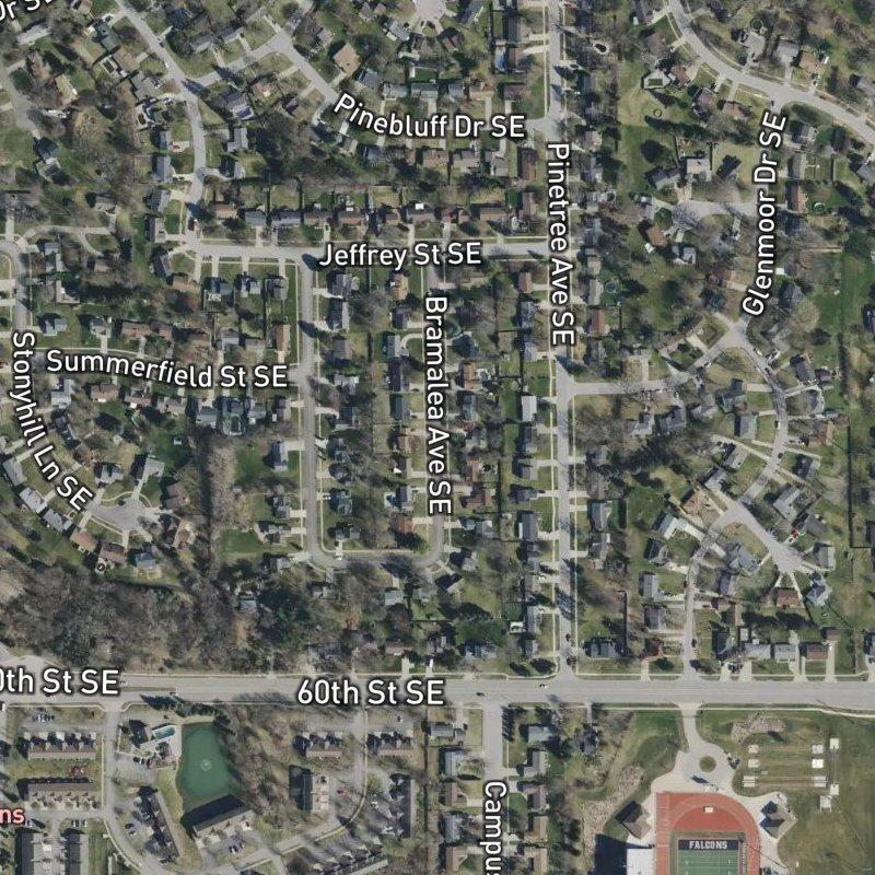 The streets here are lined with modest, well-maintained homes on quarter-acre lots—the kind of place where you can actually see your neighbors' yards and know what everyone's working on come Saturday morning. Georgetown Plat No.2 sits within the Bentbrook Estates Area, about 18 minutes from downtown Grand Rapids and just under 12 minutes from Gerald R. Ford airport, which means commuting feels easy without the constant rumble of traffic overhead. Homes run around $332K, and you're working with a compact 10-acre footprint that keeps things intimate—three parks within a mile give you options when you want to move around, with Pinewood Park about an 11-minute walk away. Dinner's about six minutes on foot, groceries are even closer at seven, and a transit stop sits five minutes down the street if you need it. Kentwood Public Schools covers the area, and there's genuine walkability built in: 96 restaurants within a mile and 36 grocery stores within two miles mean you're not dependent on the car for every errand, even though you've got plenty of space to park one.