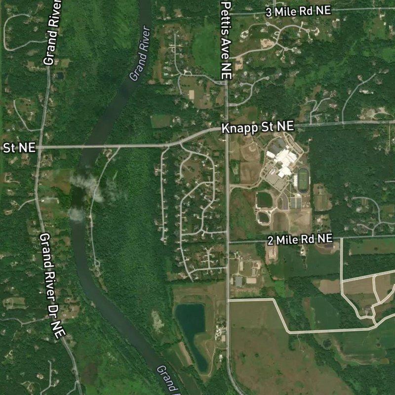 Most lots here run over an acre, which means you're looking at real space between houses on this 67-acre subdivision where homes typically sit around $838K. The Grand River is genuinely close—the Knapp Street Bridge boating access is less than half a mile away if you're into launching a kayak or fishing, and there's a walking access point just nine minutes on foot. You're about 17 minutes from downtown Grand Rapids, and the Forest Hills Public Schools district covers the area. Groceries and restaurants are a couple miles out, so this feels more rural than urban, but that's kind of the point—you get land and a boat launch without being completely cut off.